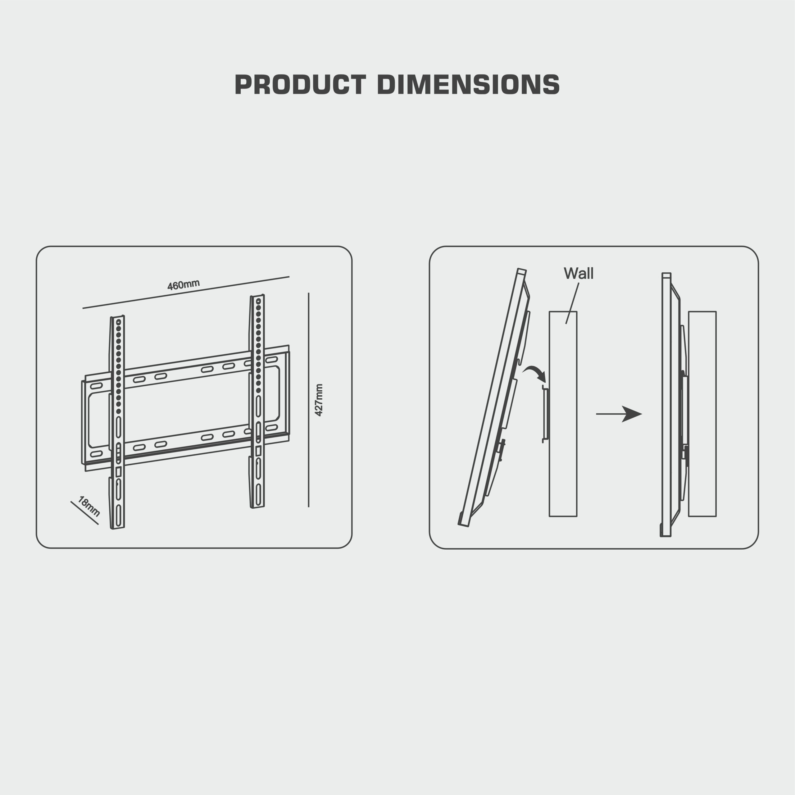 FEATURES: Screen Size: 26″-60″ Max. VESA: 400×400 mm Weight capacity: 30kg Distance: 18 mm Thickness: 1.1mm Material : Iron